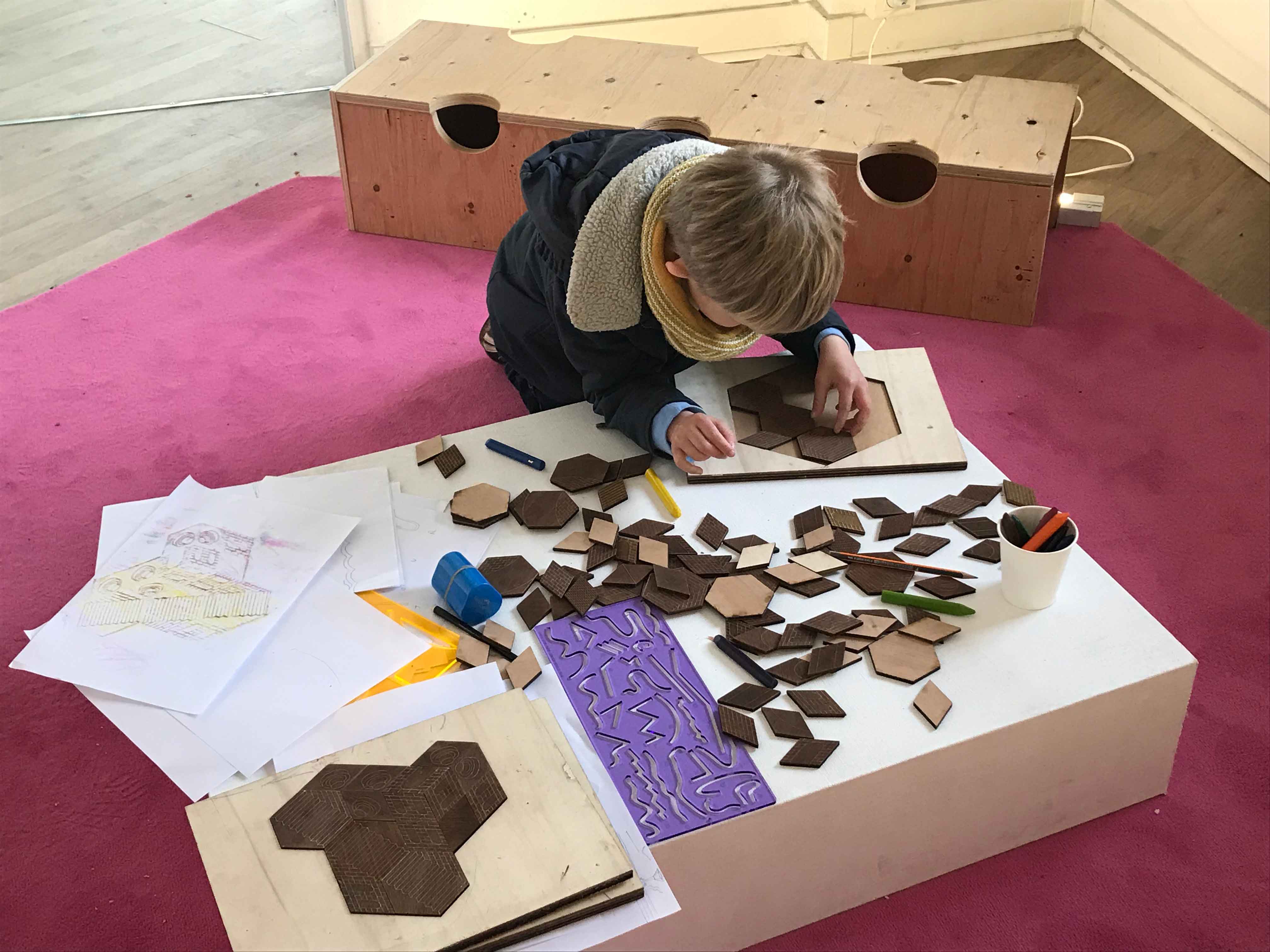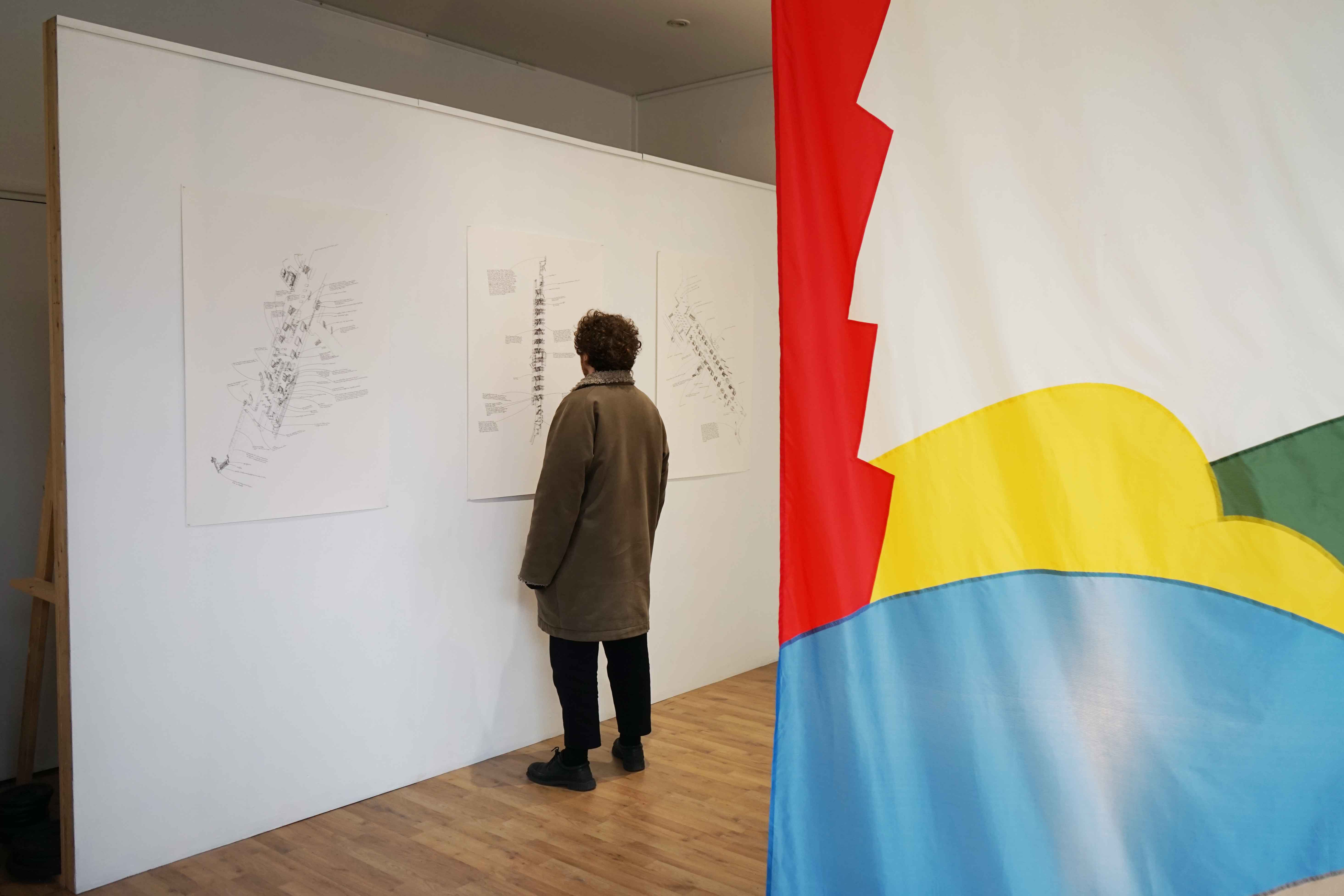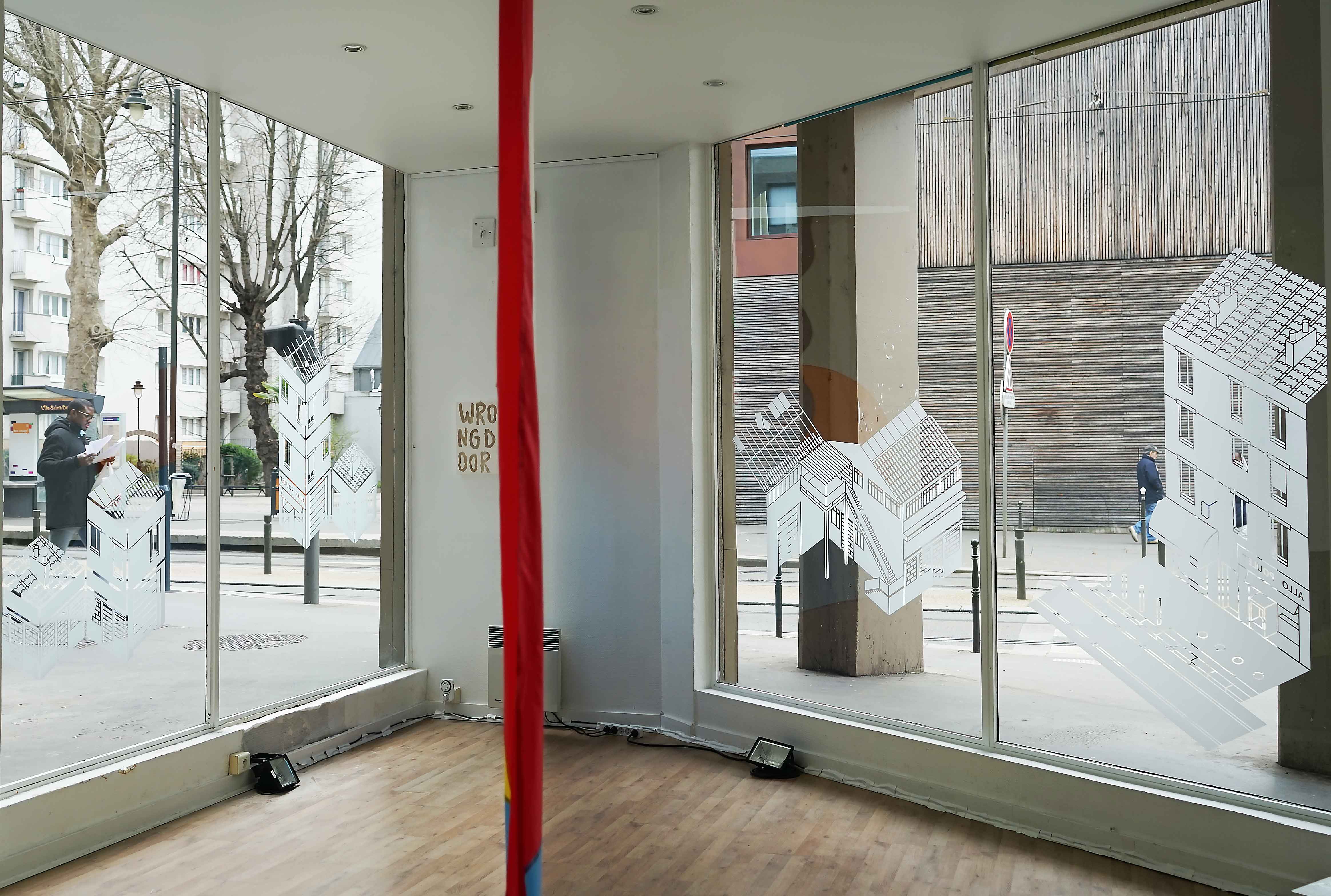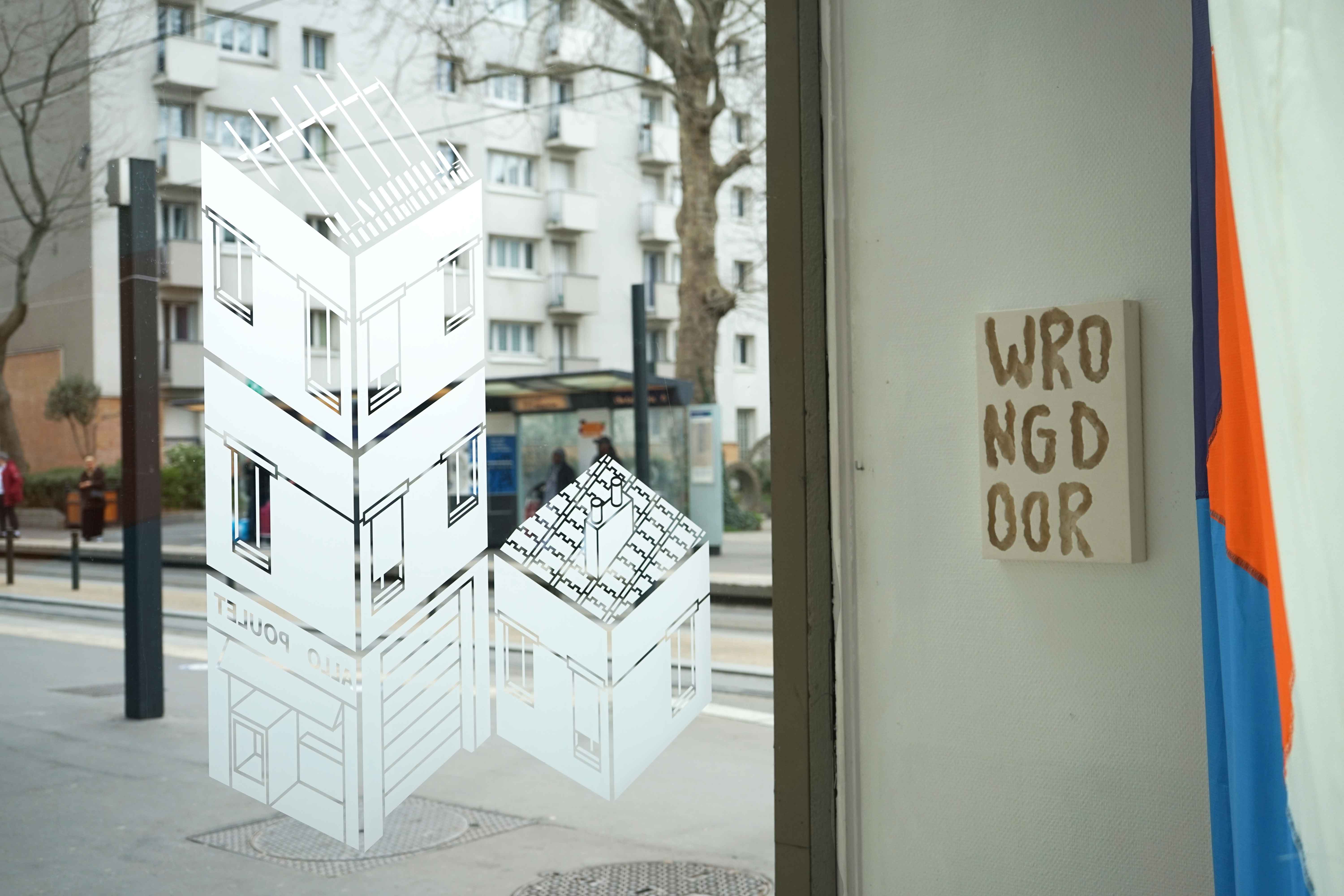 Pour l'exposition Tromper l'ennemi (du 17 mars au 2 avril 2023), Julien Rodriguez a proposé à l'artiste Chloé Dugit Gros de s'emparer des grandes vitrines de l'espace Longue Vue sur l'Île-saint-denis. En regard à un long tissu coloré de Chloé, Julien a conçu un ensemble de vues isométriques d'architectures en vinyle collé aux vitres qui évolue avec la luminosité et le déplacement du spectateur. Dans l'espace d'exposition, plusieurs oeuvres des deux artistes font appel à l'espace, au jeu et au dessin. Un triptyque au stylo bille présente la Gare du Nord observée mentalement par Julien lors du second confinement en novembre 2020, des plaques en plâtres de Chloé affichent une ambiguïté de sens ou un motif charnel. Enfin, dans une salle attenante à la salle principale, les créations de Julien et Chloé se mettent à disposition du spectateur à travers des outils de dessins : le Normographe de Chloé et le prototype du jeu Walls of Giudecca de Julien.